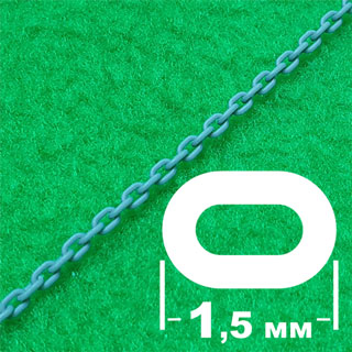 Полностью рабочая цепь с овальным звеном из пластика. Размеры звена 1,5х1,0 мм, диаметр прутка 0,28 мм. Размеры и форма звена полностью соответствуют ГОСТ 30441-97. Общая длина цепочки 300 мм.